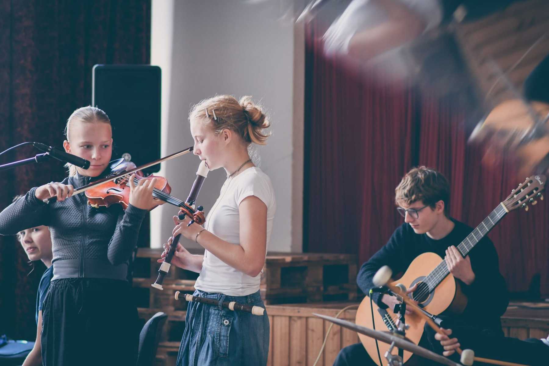 To meet the challenges of Access, the artists and students paid particular attention to the listening experience they offered to the audience, and sought to exploit the different playing, movement and listening possibilities offered by the school’s spaces. Apart from this, they were given complete freedom to experiment as they wish, sharing their different experiences, approaches and inspirations to create together artistic proposals offering a more opened experience to the audience.